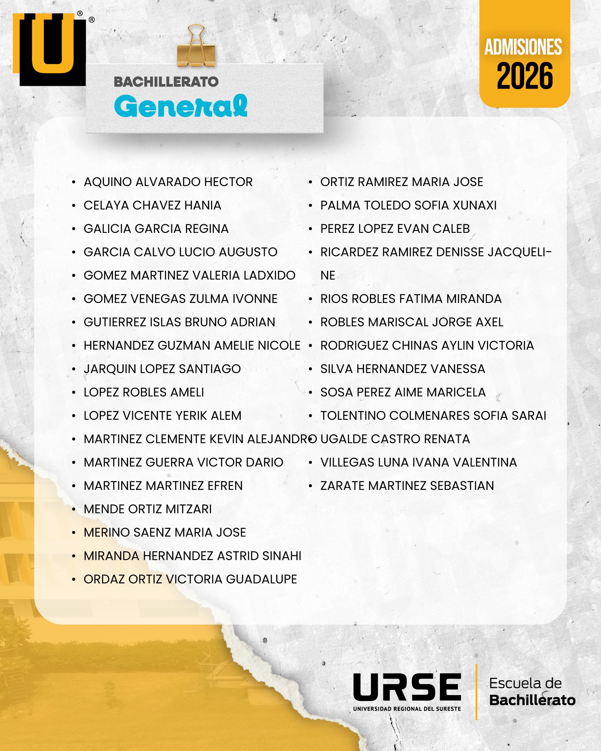 LISTA DE ADMISIÓN - 13 DE FEBRERO DE 2026